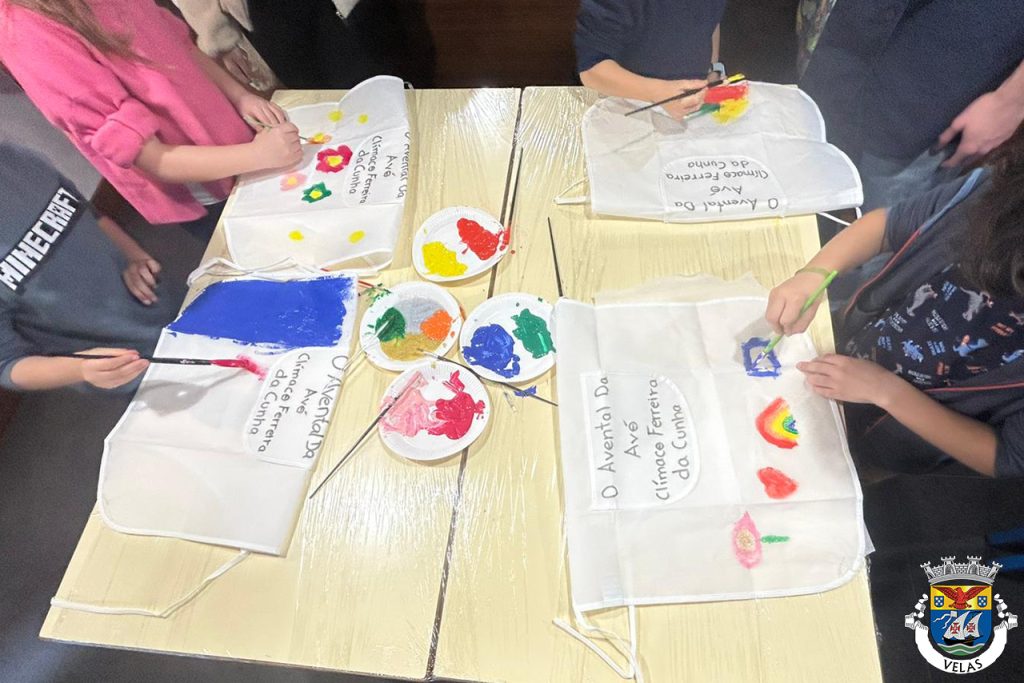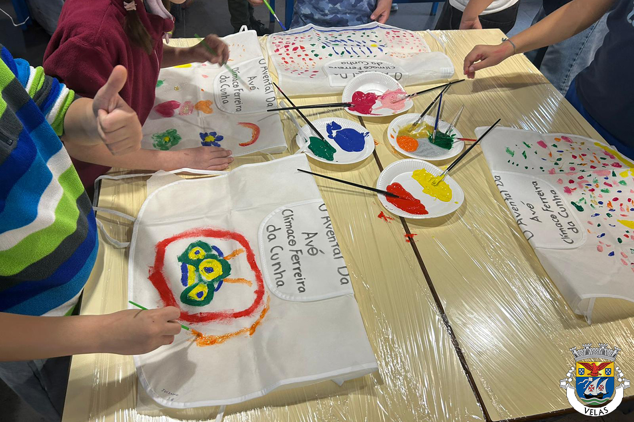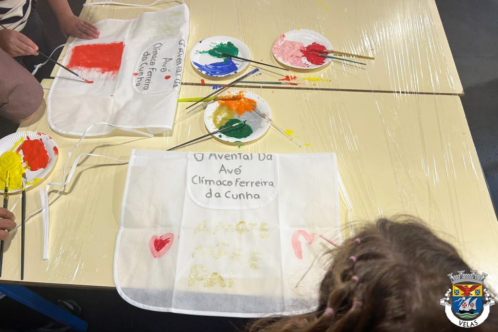 Ao longo do espaço foi encenado o conto “O Avental da Avó”, de Clímaco Ferreira da Cunha, proporcionando um momento de partilha, afeto e proximidade entre os alunos. No final da atividade, cada aluno teve a oportunidade de personalizar um avental, recorrendo a tintas e a fotografias das suas avós.