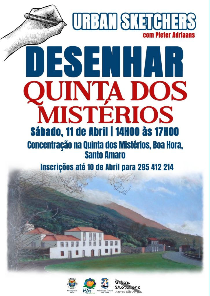 Informam-se os interessados que se encontram abertas as inscrições para a atividade Urban Sketchers, com Pieter Adriaans, a decorrer sábado, dia 11 de abril, entre as 14h00 e as 17h00, com concentração na Quinta dos Mistérios, na Boa Hora, freguesia de Santo Amaro.