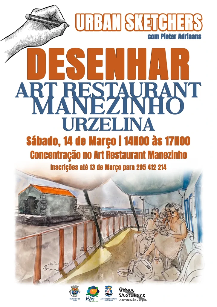 No âmbito da Agenda Cultural do Concelho, informam-se os interessados que se encontram abertas as inscrições para a atividade Urban Sketchers com Pieter Adriaans, a decorrer sábado, dia 14 de março, entre as 14h00 e as 17h00, com concentração no Art Restaurant Manezinho, na freguesia da Urzelina.