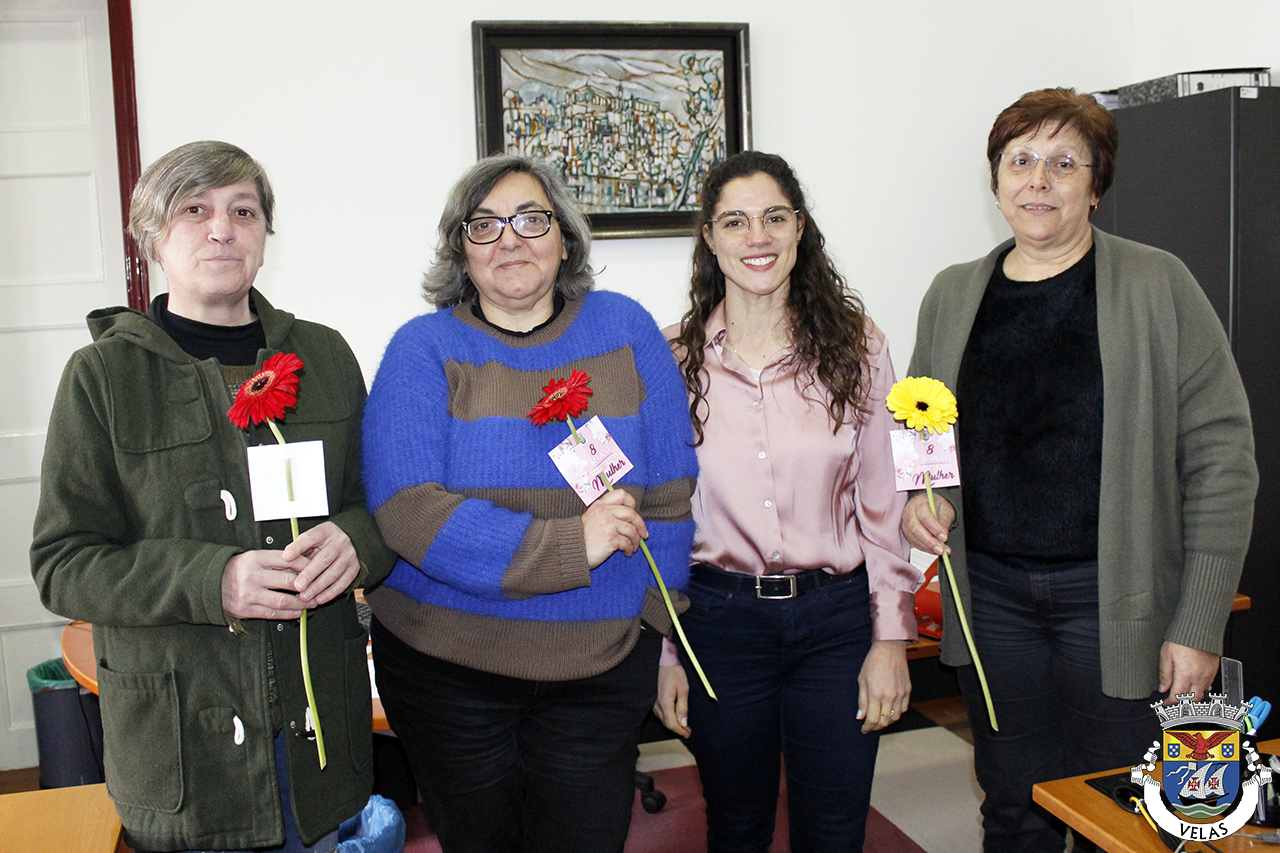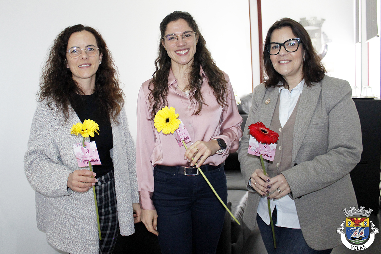 A iniciativa contou também com a entrega de uma flor às colaboradoras do Serviço de Finanças de Velas e da Comissão de Proteção de Crianças e Jovens, reforçando o simbolismo da data enquanto momento de união, reconhecimento e igualdade.
