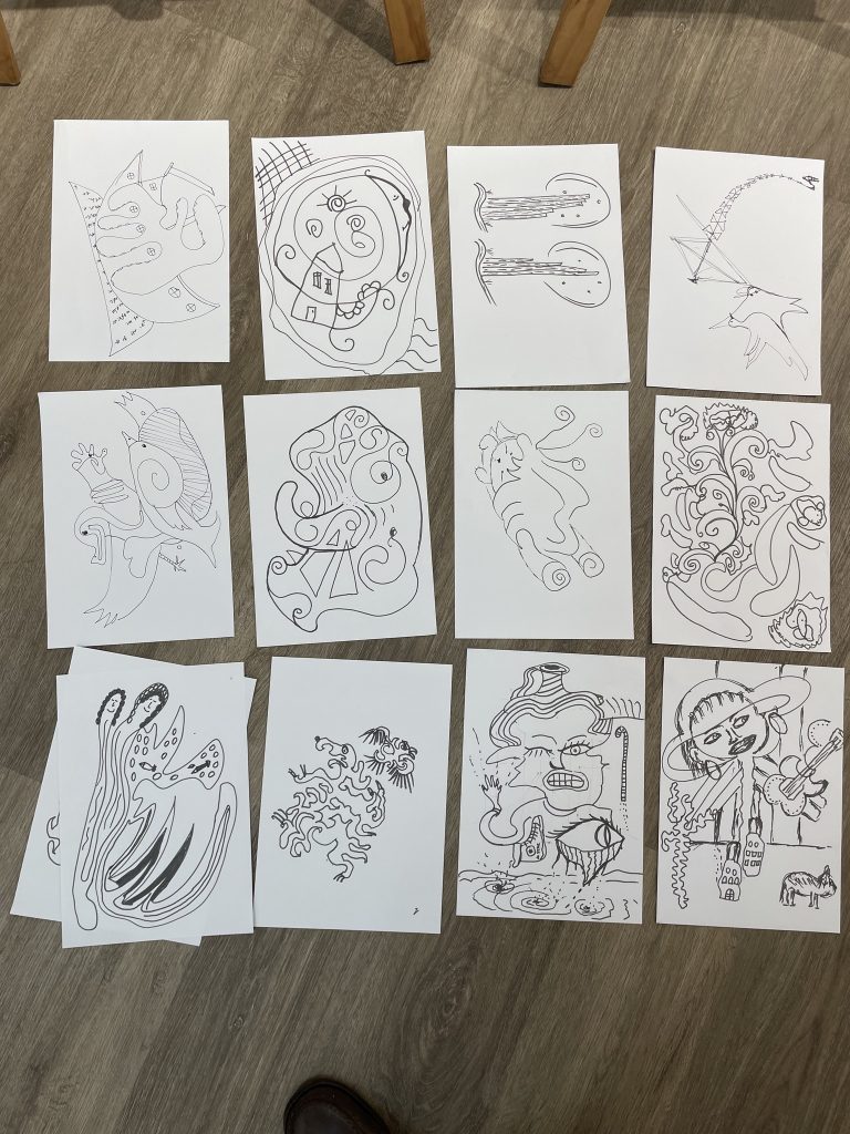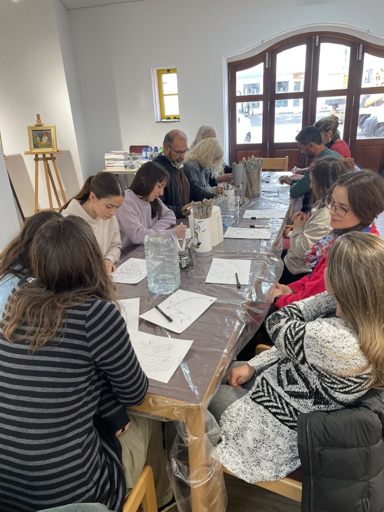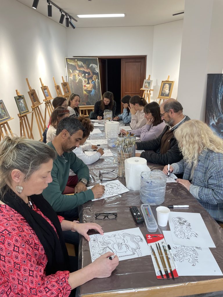 Foram partilhadas um conjunto de técnicas que definem o processo criativo, desde a construção de cenários imaginários até ao uso intuitivo da cor como elemento narrativo. Ao longo da atividade, os participantes puderam criar as suas próprias obras.